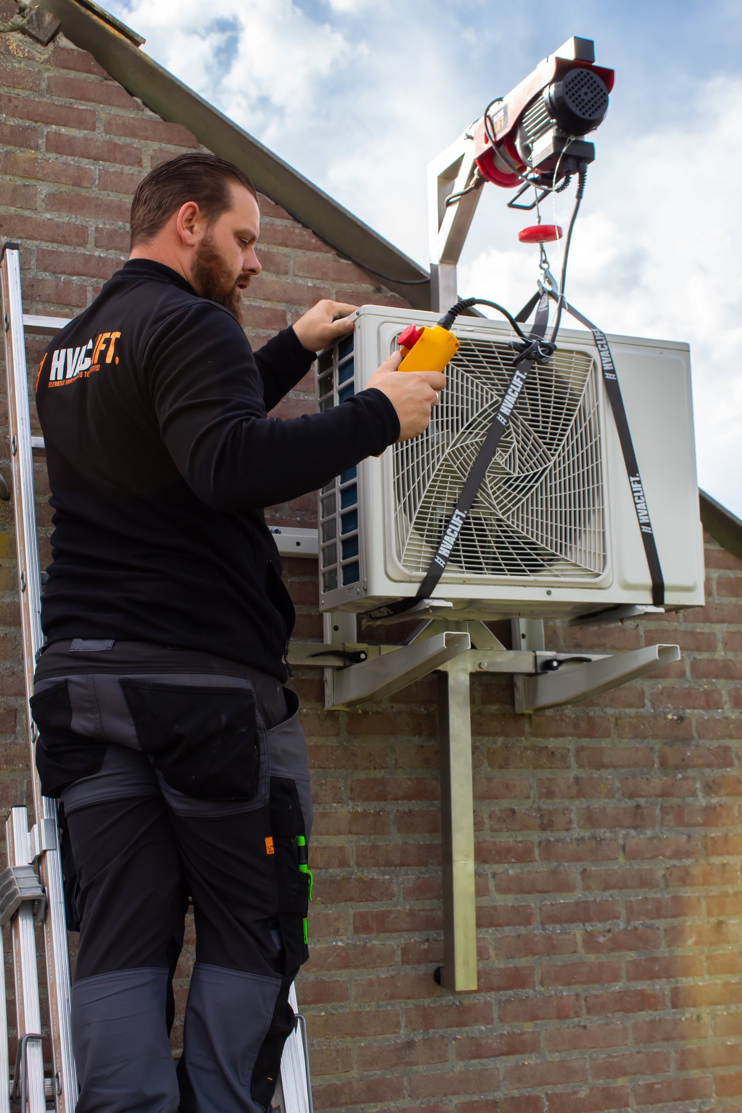 "Wat een geweldige "lift" om je airco buitenunits/warmtepompen op het platte dak te krijgen. Super enthousiast zijn we!"