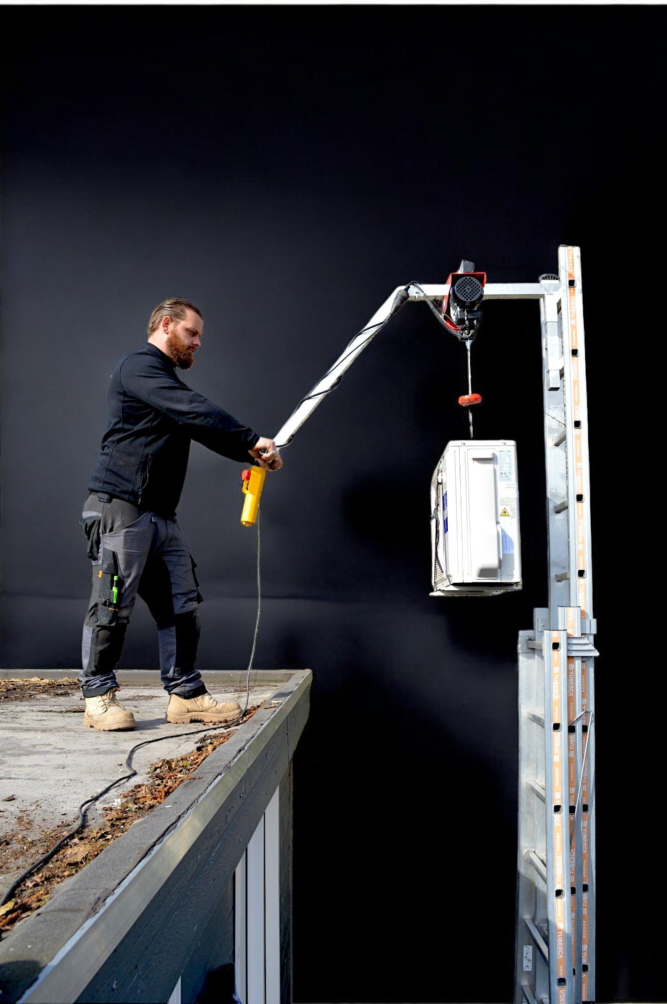 "Wat een geweldige "lift" om je airco buitenunits/warmtepompen op het platte dak te krijgen. Super enthousiast zijn we!"